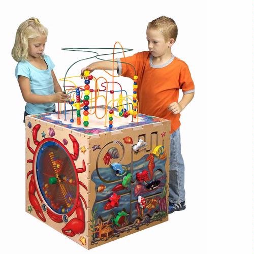 Kids can dive into learning about sea life with Anatex's bright Sea Life Play Cube Activity Center. Designed for open-ended play, the cube features an enticing Rollercoaster Bead Maze, as well as games including Sea Life Pathfinder, Octopus Flipper, Blowfish Magnetic Circle Spinner and Crab Paddlewheel. Each game is built into the activity center's sides and tes hand-eye coordination, cognitive and cooperative play skills. Five-sided play center with rollercoaster bead mazes. Games include Sea Life Pathfinder and Crab Paddlewheel. Great for waiting rooms, classrooms and home play areas. Includes activity center and games. Recommended for children age 3 Years to 5 Years. Dimensions: 24L x 24W x 45H inches.